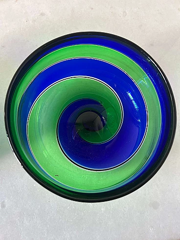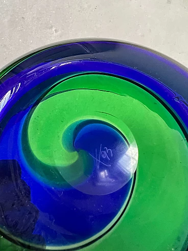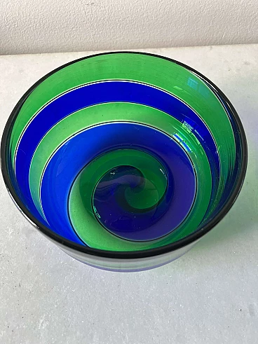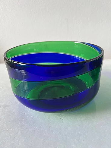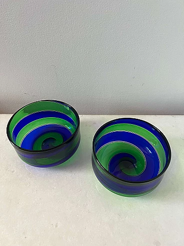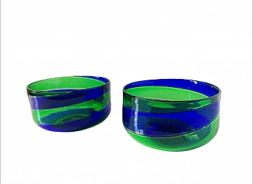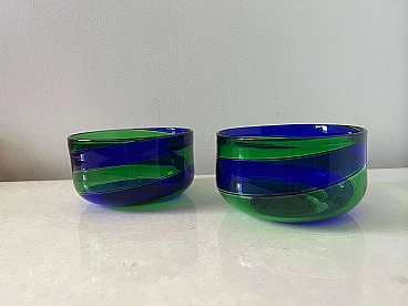 Coppia di ciotole in vetro blu e verde di Fulvio Bianconi per Venini, anni '90