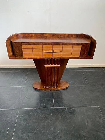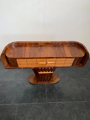 Consolle Art Déco in acero, noce e palissandro, anni '30