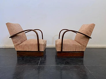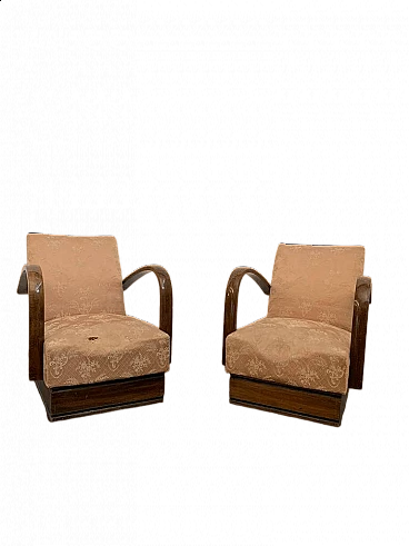 Coppia di poltrone Art Déco con braccioli ad arco in faggio, anni '30