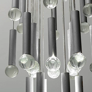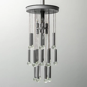 Lampadario in metallo e vetro di Gaetano Sciolari, anni '70