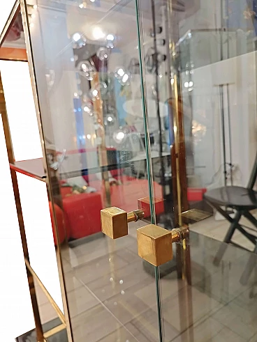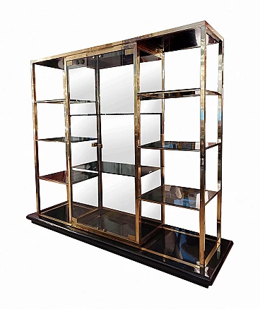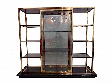 Libreria con vetrina in ottone, legno laccato e vetro di Romeo Rega, anni '70