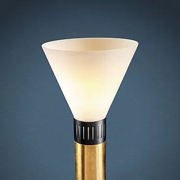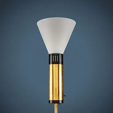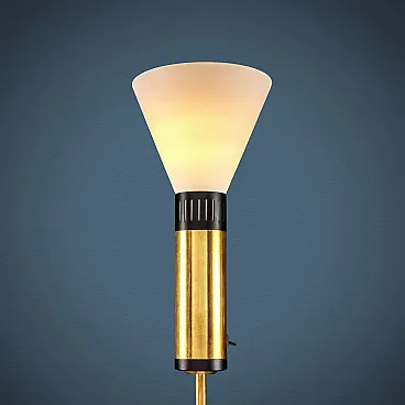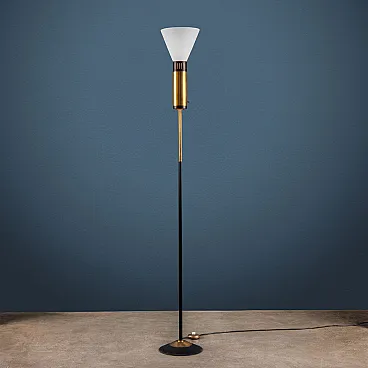 Piantana in metallo, alluminio smaltato e ottone con diffusore in vetro opalino di Stilnovo, anni '60