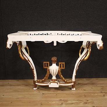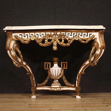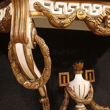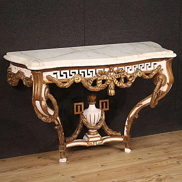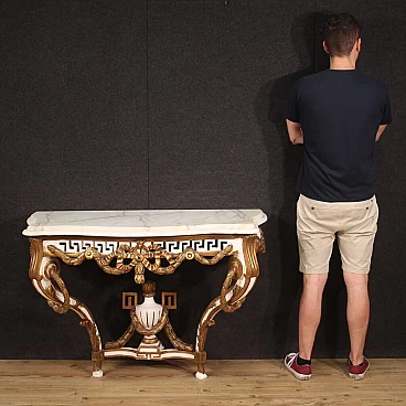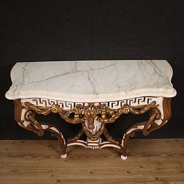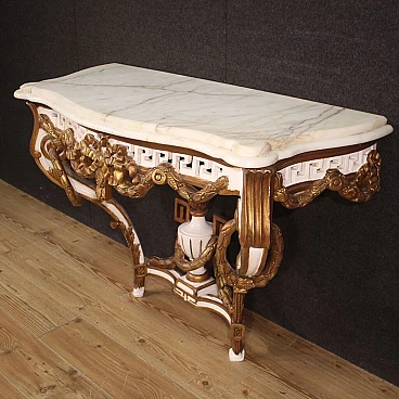 Consolle in legno in stile Luigi XV con piano in marmo, anni '80