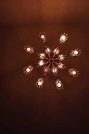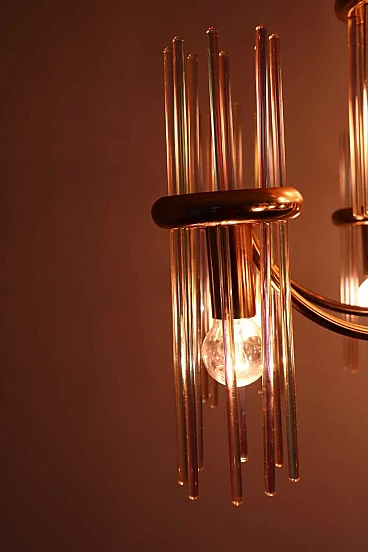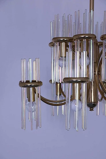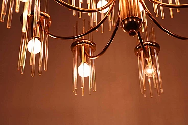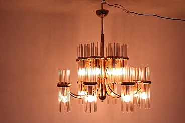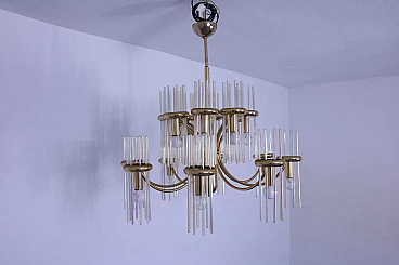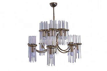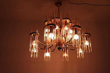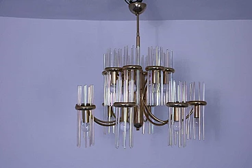 Lampadario in ottone e vetro di Gaetano Sciolari