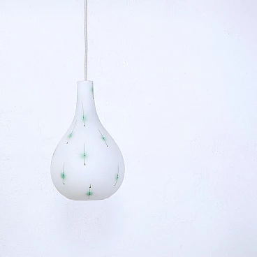 Lampadario a goccia in vetro opalino bianco, anni '60