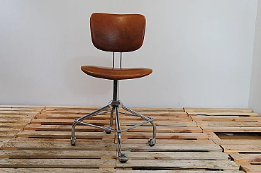 Sedia girevole in ferro e similpelle di Kovona, anni '70