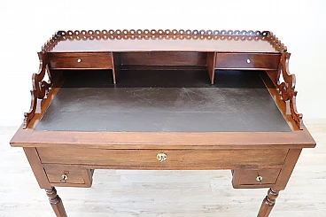 Scrivania Luigi Filippo in noce massello con gambe tornite, metà '800