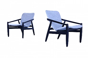 Coppia di poltrone Pizzetti completamente restaurate: la struttura in legno è stata laccata con vernice nera e il tessuto sostituito