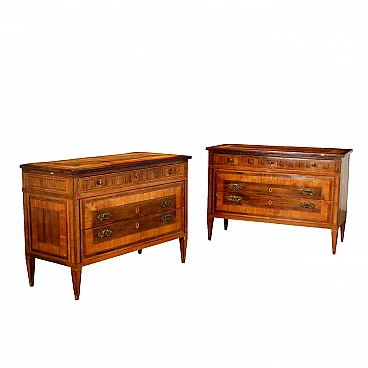 Coppia di comò Luigi XVI impiallacciati in noce e ciliegio, fine '700