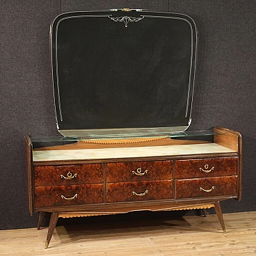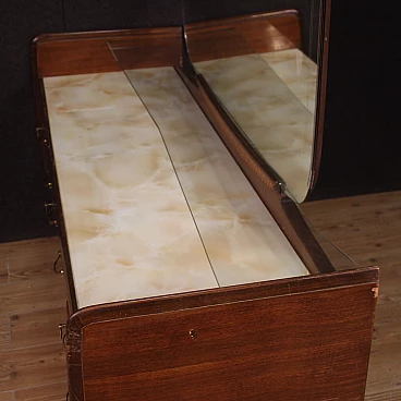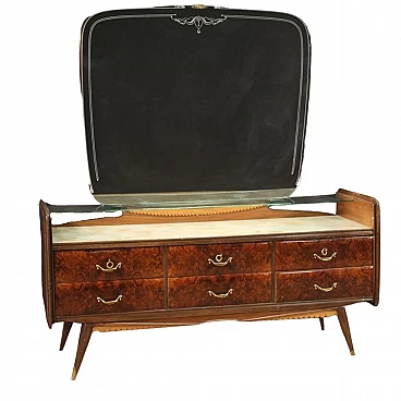 Cassettiera con specchio in legno impiallacciato e vetro, anni '50