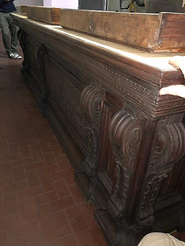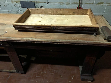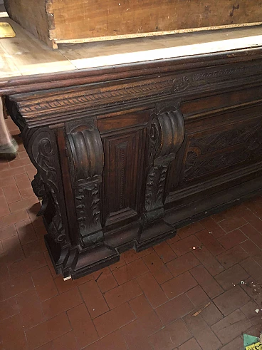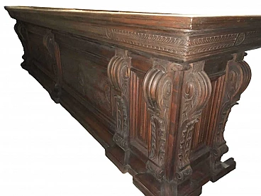 Bancone in mogano e pioppo con piano in marmo, inizio '900