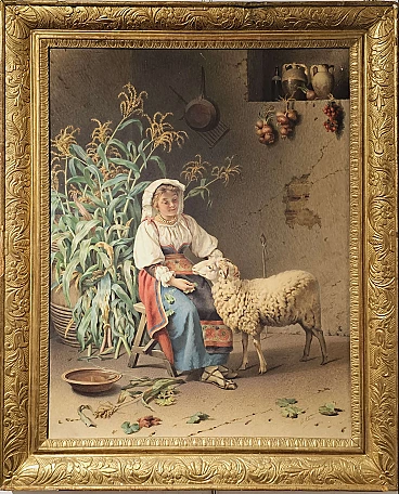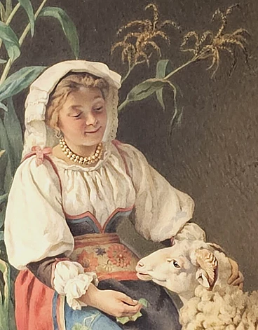 Girolamo Nattino, pastorella con pecora, acquerello, '800