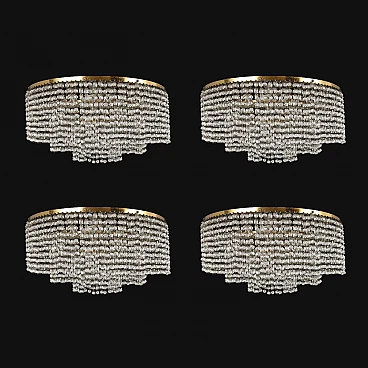 4 Lampadari a quattro luci con struttura a cascata in cristallo, anni '50