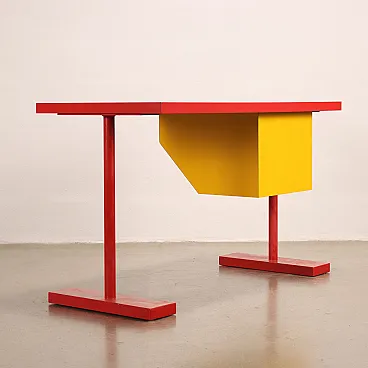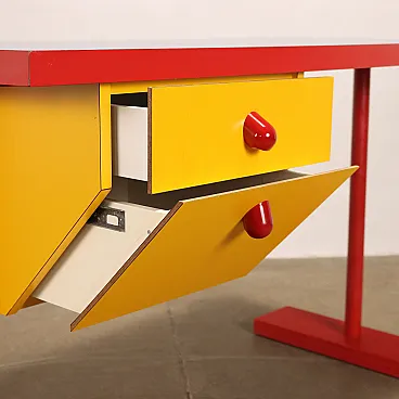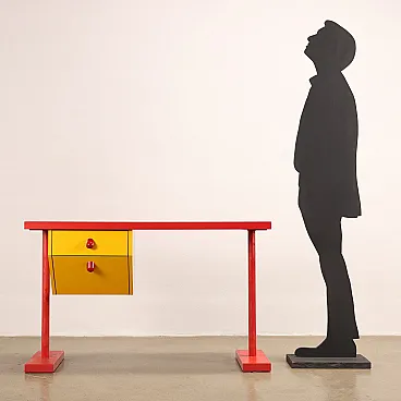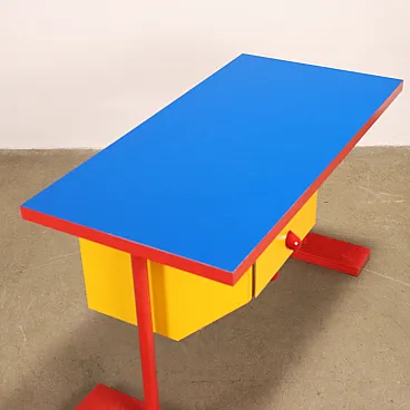 Scrivania in legno rivestito in formica e metallo smaltato, anni '80