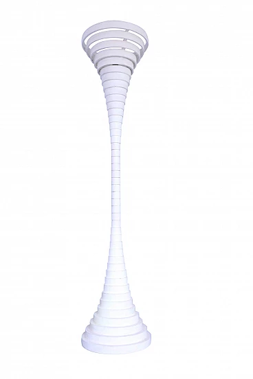 Lampada da terra modello Helga Design Silvio Bilangione e Paolo Portoghesi prodotta da Fumagalli pubblicata ne La rivista dell'Arredamento - Interni n 11, novembre 1967. La lampada è realizzata in legno laccato bianco. Leggera usura dovuta all'età e all'utilizzo. Funzionante
