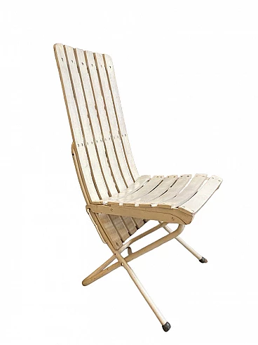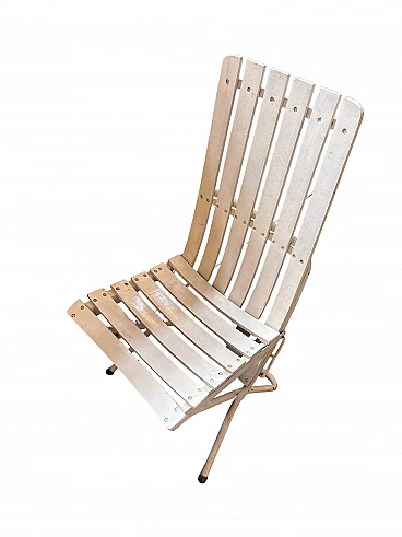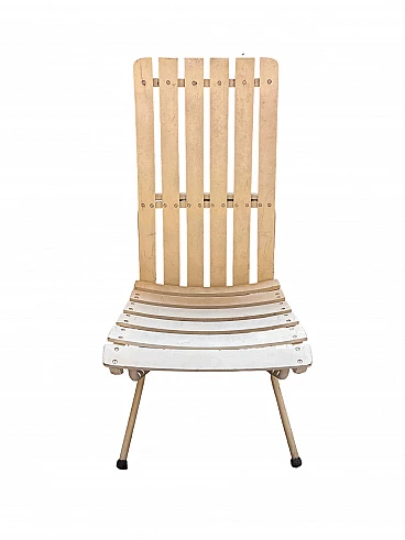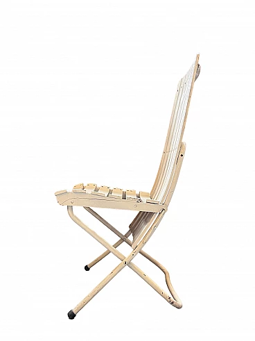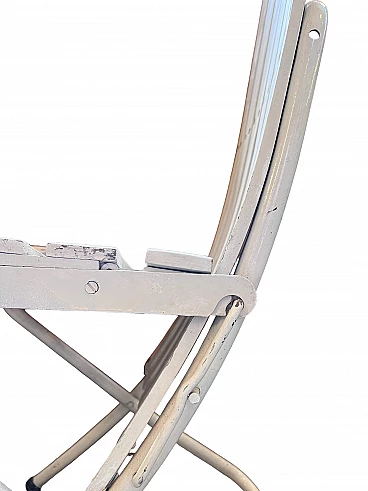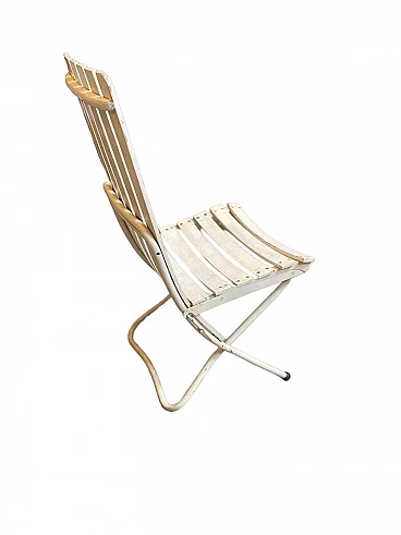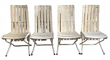 4 Sedie pieghevoli bianche in ferro e legno, anni '60