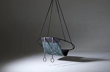 Spogliata di ogni eccesso, questa poltrona sospesa ha una struttura circolare con la seduta in pelle che pende liberamente al suo interno, molto elegante e confortevole. Le linee pulite e la leggerezza di questa poltrona la rendono perfetta per qualsiasi spazio, sia per interni che esterni coperti. Ogni esemplare è fatto a mano con cura.