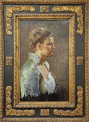 Francesco De Nicola, ritratto femminile, dipinto a olio su tela, inizio '900