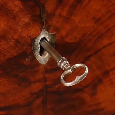 Cassettone Carlo X piemontese lastronato in mogano, '800