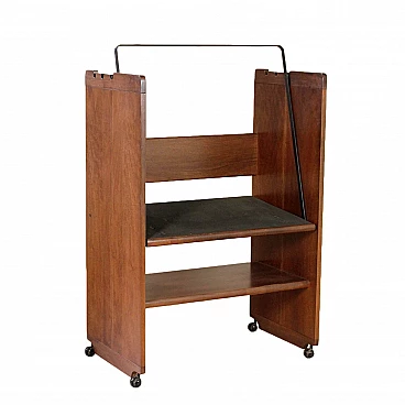 Mobile porta TV; legno impiallacciato noce e gomma sul piano d'appoggio dell'apparecchio. Prodotto in buone condizioni, presenta piccoli segni di usura.