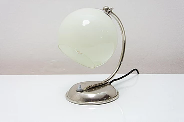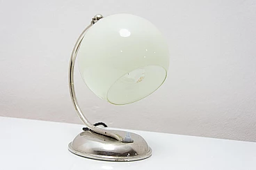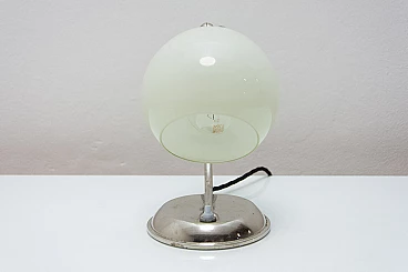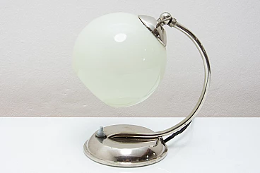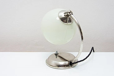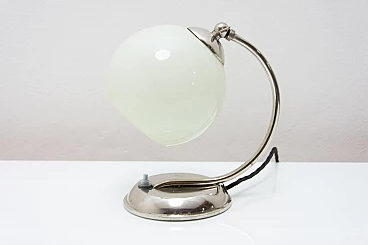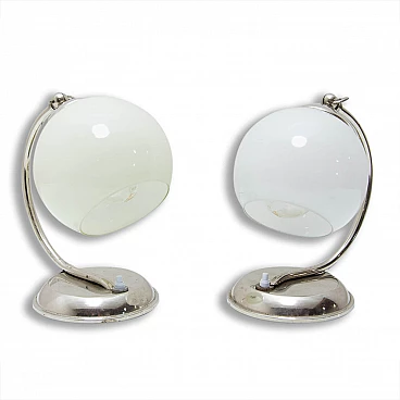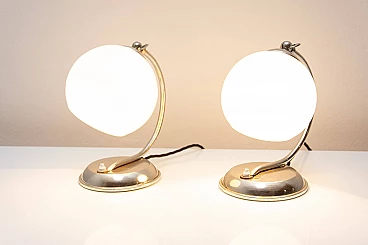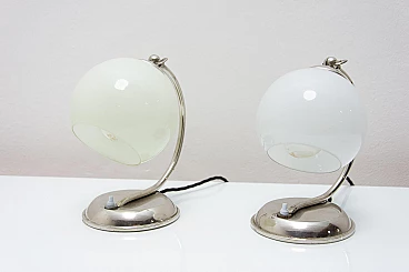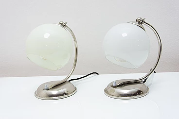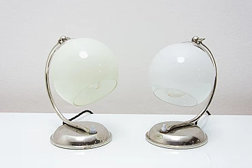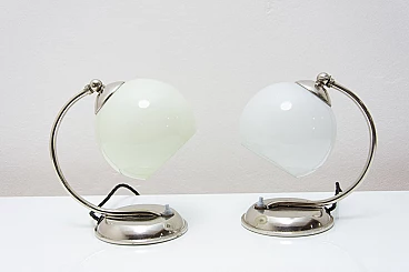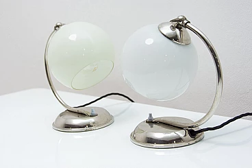 Coppia di lampade da tavolo boeme in metallo cromato e vetro, anni '30
