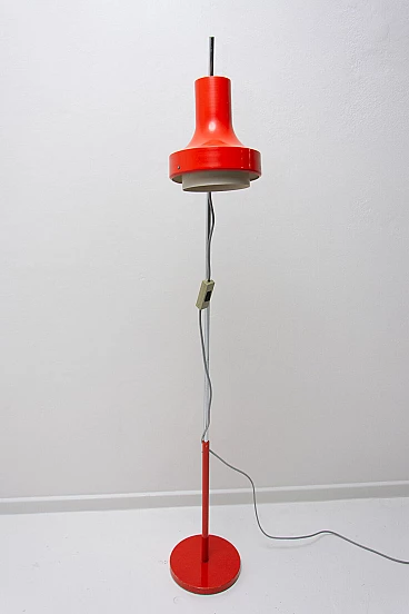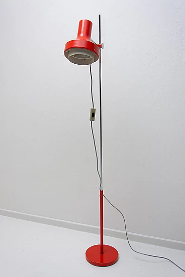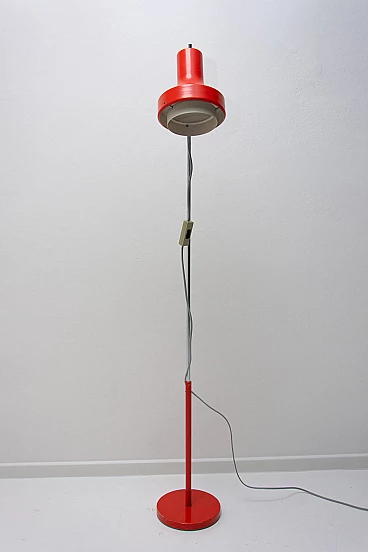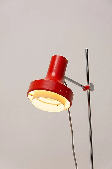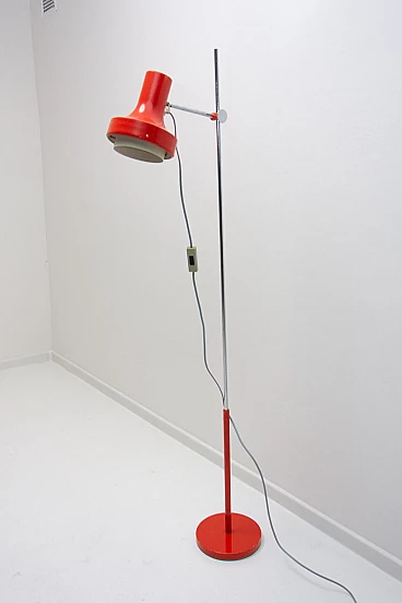 Lampada da terra in alluminio rosso e acciaio cromato di Josef Hurka, anni '70