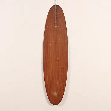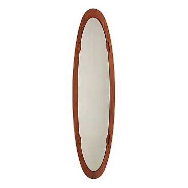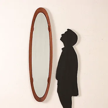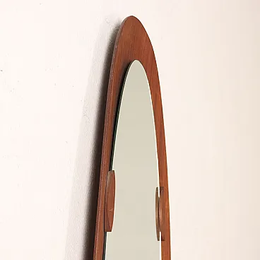 Specchio da parete su pannello curvato impiallacciato teak, anni '60