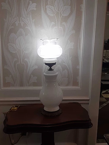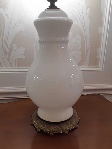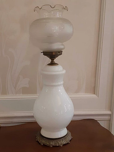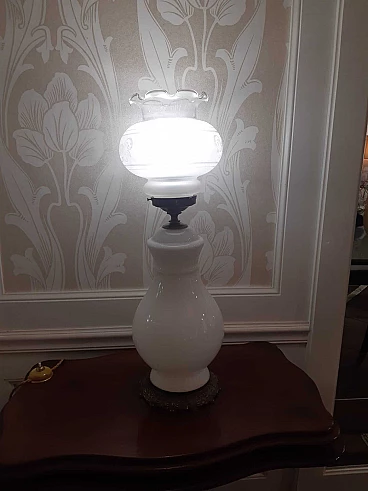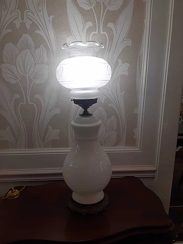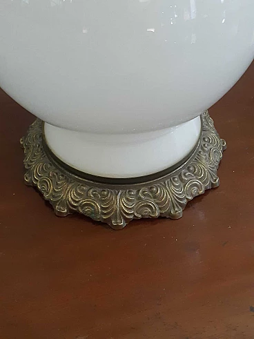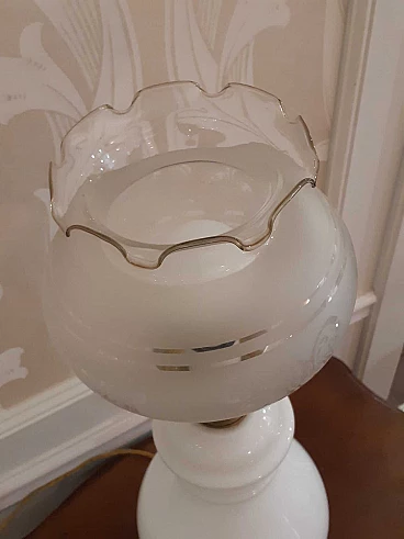 Lampada da tavolo con base in vetro e ottone e paralume in vetro satinato, anni '20