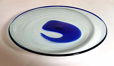 Svuota tasche (o vassoio) rotondo in vetro di Murano. Il design è essenziale ma ben proporzionato ed elegante; piacevolmente estetico è l'effetto dei due colori che gli artigiani sono riusciti a realizzare con abilità e maestria. Questo oggetto è stato realizzato dai maestri muranesi con la tecnica dell'"incamiciatura", che consiste nel sovrapporre, come lavorazione iniziale, alla massa vitrea uscita dalla fornace, uno o più strati successivi di vetro di colori diversi. Nel nostro oggetto alla massa vitrea azzurra, quasi trasparente, è stato sovrapposto solo il colore blu immergendo la forma bianca appena abbozzata in un crogiolo contenente il vetro fuso blu. Poi il Maestro vetraio rimetteva il tutto in fornace per qualche minuto e poi soffiava nell'apposita botte, aiutandosi con delle pinze e lavorandola a mano dava alla pentola vuota la forma desiderata modellando anche il decoro centrale, aggiungendo anche un filo di vetro blu lungo tutto il bordo. Questa operazione è stata fatta in piano, quindi molto più difficile far fondere i due colori, l'oggetto è stato realizzato interamente a mano e senza l'uso di stampi o modelli, creando così un pezzo unico, proprio come un lavoro d'arte. Le prime notizie di questa tecnica riguardano Benedetto Barbaria, che nel 1815 realizzò "vetro soffiato a due strati di smalto". L'oggetto è stato creato tra il 1970 e il 1973 a Murano (Venezia-Italia). Come si evince dall'incisione sul bordo, il pocket blank è un oggetto in edizione limitata; è il n° 34 di 150 pezzi realizzati, i quali, essendo tutti fatti a mano, presentano differenze l'uno dall'altro. Purtroppo non riusciamo a decifrare il nome del design che lo ha realizzato per l'azienda muranese Effe Due. Dal 1969 l'azienda artigiana Effe Due di Franco Fuga & C. produce e commercializza pregiati Vetri di Murano di ottima qualità e fattura, secondo le antiche tecniche della tradizione muranese. Bicchieri, bottiglie, vassoi, vasi, lampade, lampadari, sculture e altro ancora completamente realizzati a mano e soffiati a bocca per soddisfare un pubblico esigente e attento alla qualità. Ai titolari dell'Azienda piace ripetere ai propri clienti: "Ci piace pensare, e può darsi, che il nostro illustre concittadino Marco Polo abbia donato a Kublai Khan, allora signore della Cina, molti oggetti tra cui i nostri Vetri di Murano, che noi continuiamo oggi a lavorare con la stessa accuratezza e raffinatezza di un tempo. Ci piace definire il nostro stile "classico-moderno" per l'arredamento di oggi, ma anche per quello di...Sempre. Le cose belle sono senza tempo." Questo ci conferma che Murano è letteralmente un melting pot in cui l'abilità e le tecniche sviluppate dai maestri in quasi 900 anni si combinano con le visioni artistiche contemporanee - e naturalmente il gusto del pubblico in continua evoluzione - per creare Murano sempre nuove e sempre più belle disegni in vetro. Il nostro articolo è in buone condizioni. Misura diametro 30 cm, altezza 3 cm. Per tutte le nostre spedizioni utilizziamo materiali di imballaggio speciali (casse di legno su misura, polistirolo, ecc.) per la massima protezione e sicurezza degli articoli.