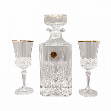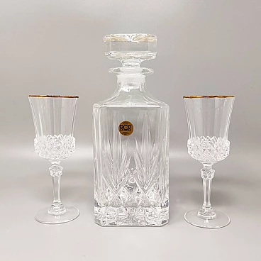 Decanter e coppia di bicchieri in cristallo di RCR, anni '70