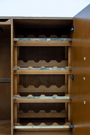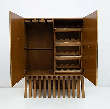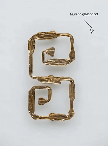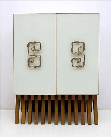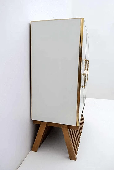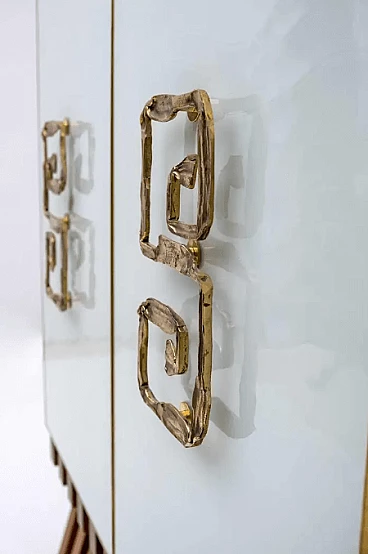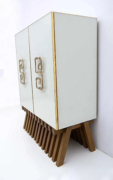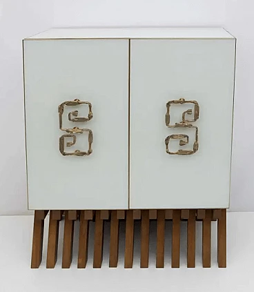 Credenza bar postmoderna in vetro di Murano e ottone, anni '80