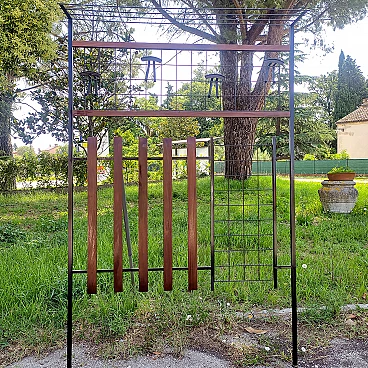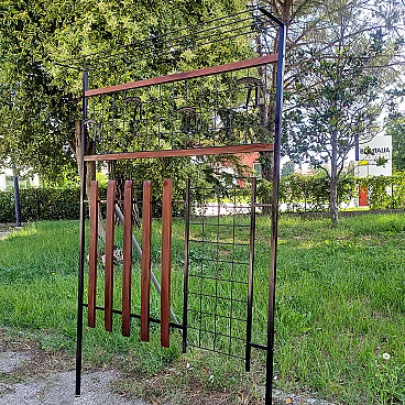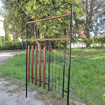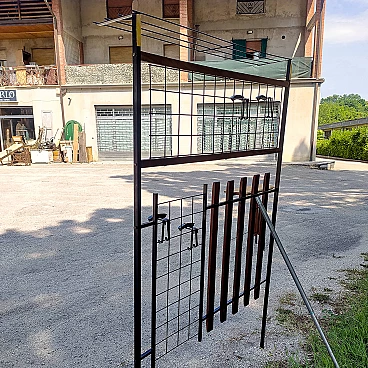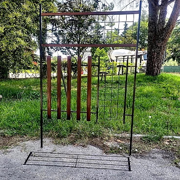 Appendiabiti da ingresso in ferro e legno con cappelliera, anni '60