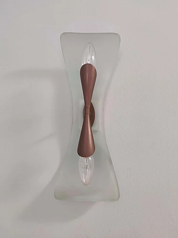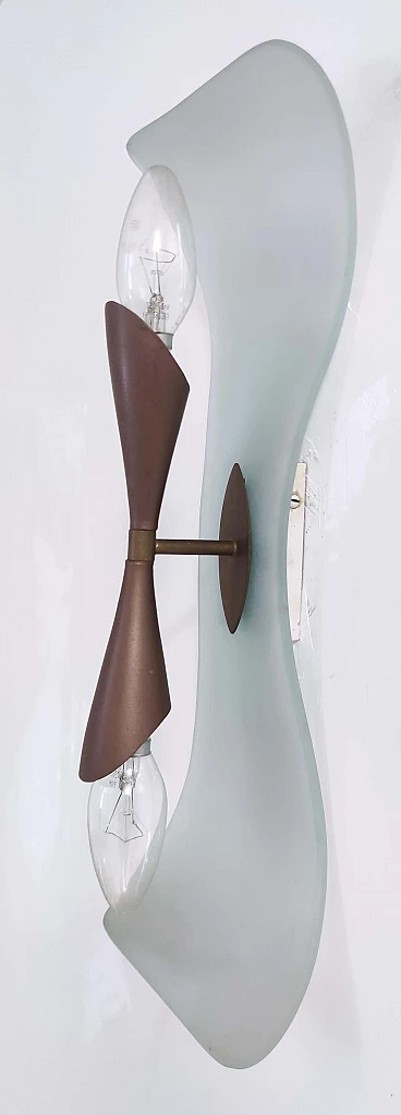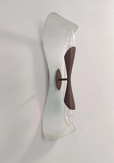 Applique in ottone e vetro acidato e curvato attribuibile a Fontana Arte, anni '60