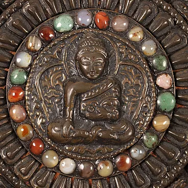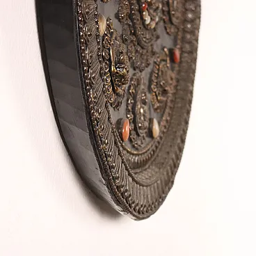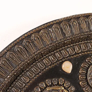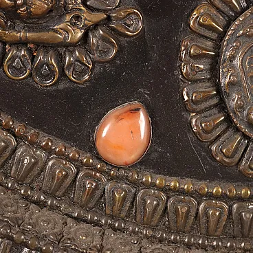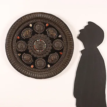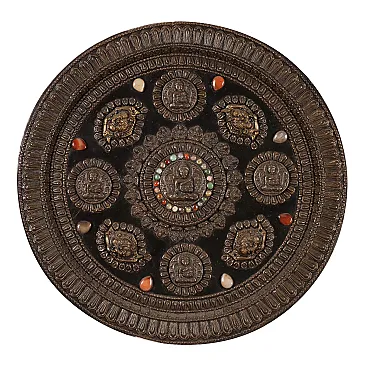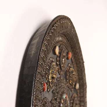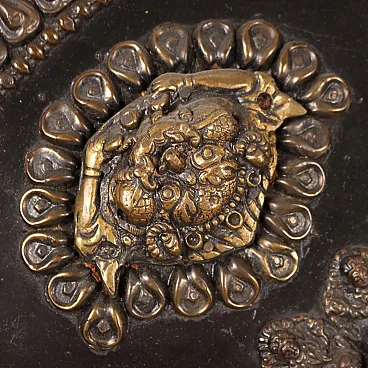 Placca parietale lamaista in legno con decori in lamina