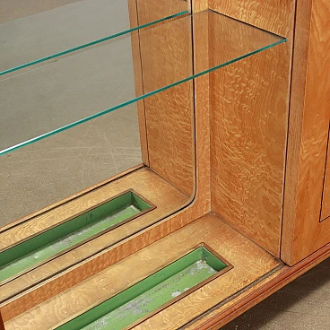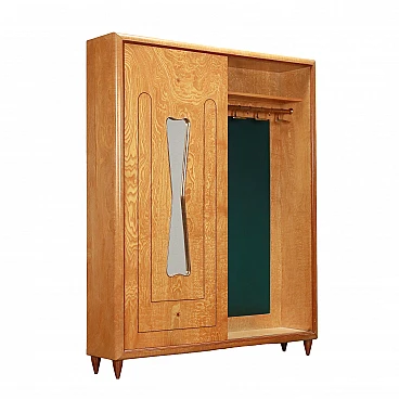 Appendiabiti da parete in legno impiallacciato radica con anta scorrevole, anni '50