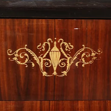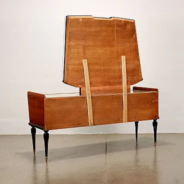 Comò in legno esotico impiallacciato con piano in vetro e specchio, anni '50