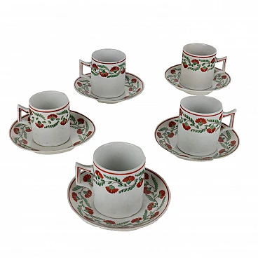 5 Tazzine da caffè con piattino di Ginori, seconda metà dell'800