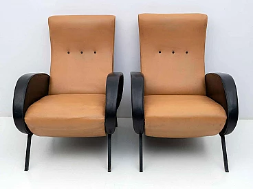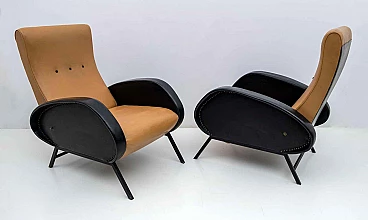 Coppia di poltrone reclinabili in pelle di Marco Zanuso, anni '50