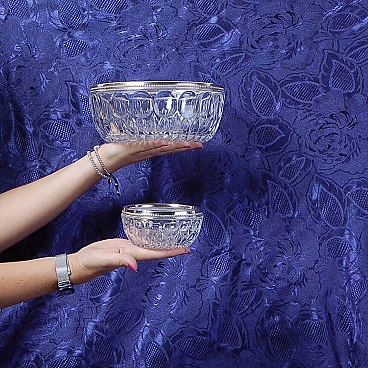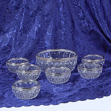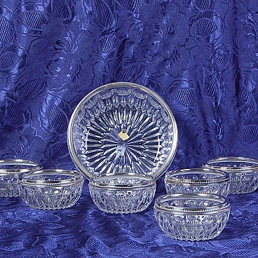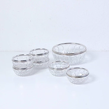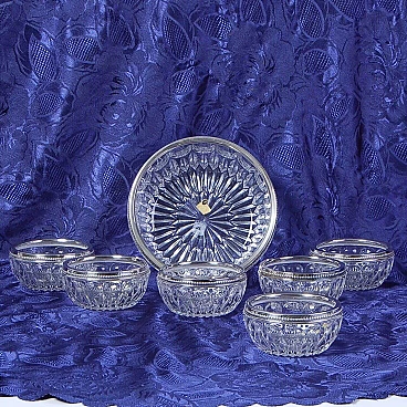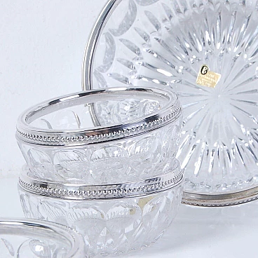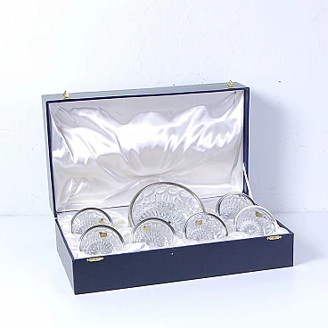 Servizio da macedonia in cristallo e lamina argentata, anni '70