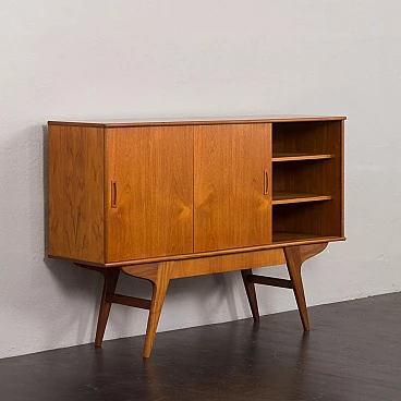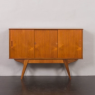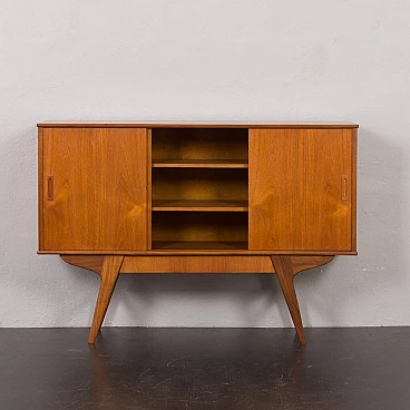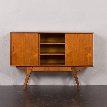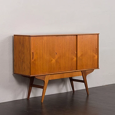 Credenza danese in teak con base in teak massiccio con cassetto nascosto, anni '60