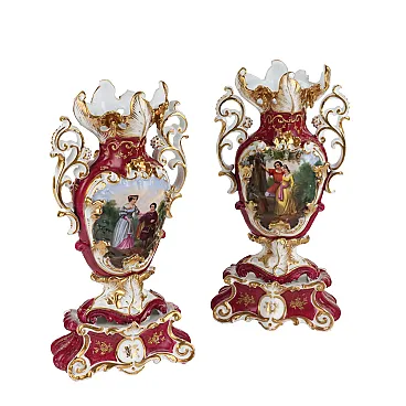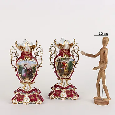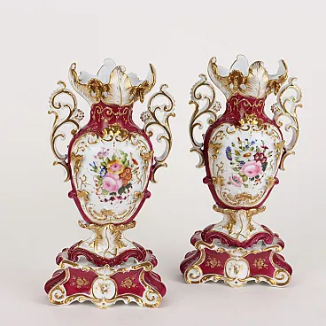 Coppia di vasi in porcellana Vecchia Parigi nello stile di Jacob Petit, '800
