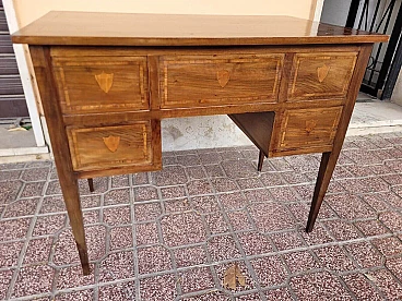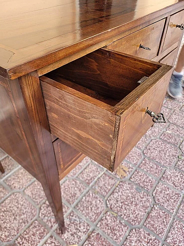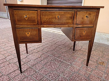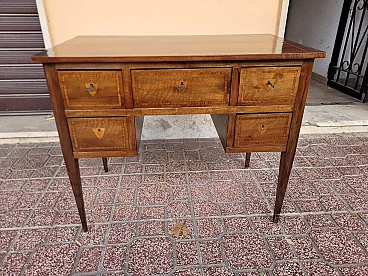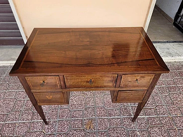 Scrivania da centro in noce con filetti in acero in stile Luigi XVI, inizio '900