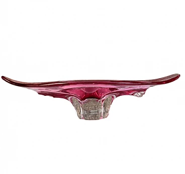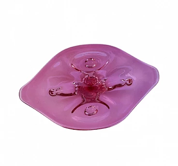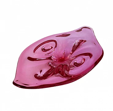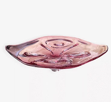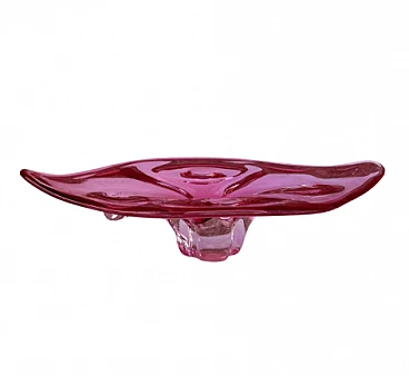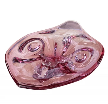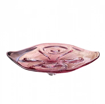 Vassoio in vetro rosa di Josef Hospodka per Chribska Sklarna, anni '60