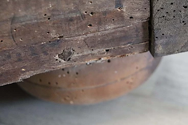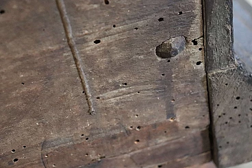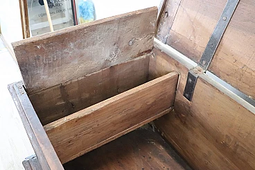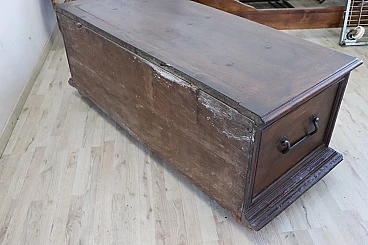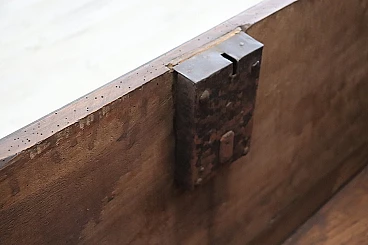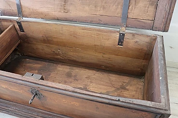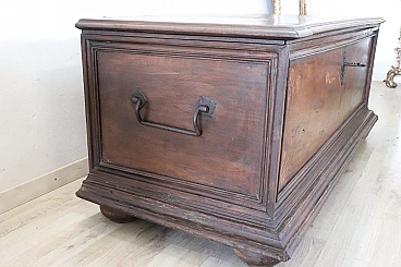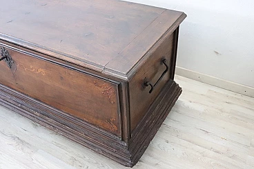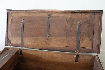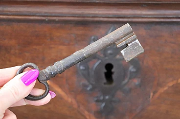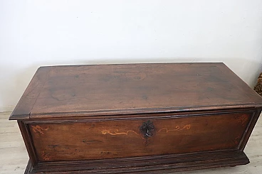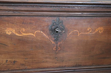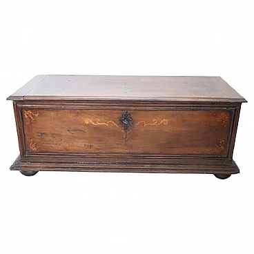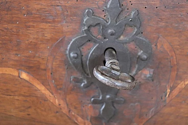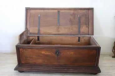 Bellissima e imponente cassapanca antica in legno massello di noce metà secolo XVII circa. Caratterizzata sul fronte da una semplice lavorazione a intarsio in legno di noce. Internamente dotata di un piccolo scomparto il cui coperchio serve a sostenere il grande coperchio quando viene aperto. Di gran pregio la ferramenta completamente originale e coeva con serratura dotata della sua chiave antica. Ottime condizioni originali con segni dati dalla normale usura e trascorrere del tempo. Vi consigliamo comunque di guardare bene in dettaglio tutte le foto allegate. Proposta ad un'ottimo prezzo trattabile vi invitiamo ad inviarci le vostre proposte di acquisto le valuteremo con piacere.