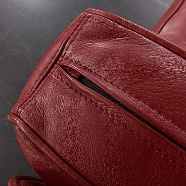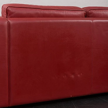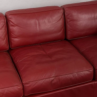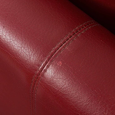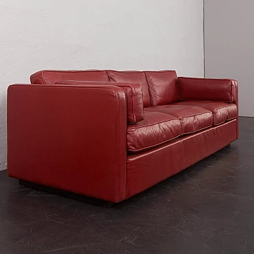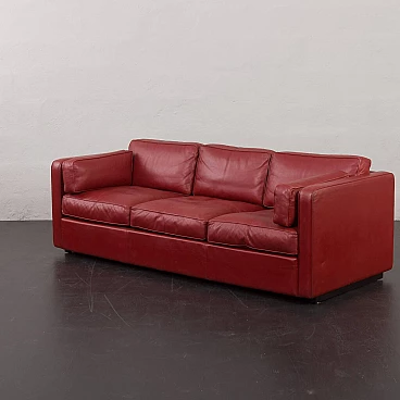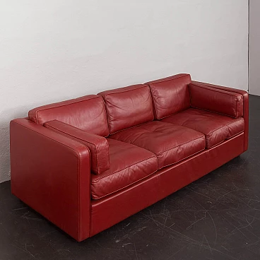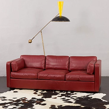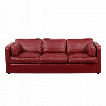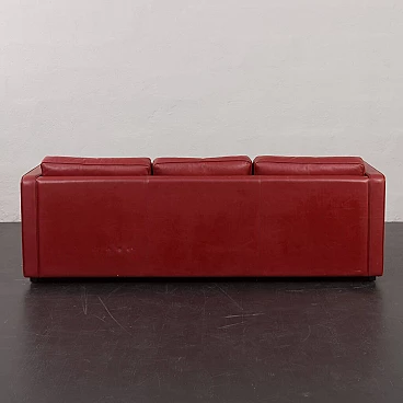 Divano a tre posti in pelle anilina dall'intenso color bordeaux, anni '70. Dotato di otto cuscini, tutti generosamente imbottiti in piuma d'oca, che garantiscono un comfort ineguagliabile. Progettato con cura con un'estetica senza tempo e minimalista, questo divano si adatta perfettamente a diversi stili di arredamento. Il divano è in ottime condizioni originali d'epoca con lievi tracce d'uso e una leggera patina. La lucentezza della pelle è stata rinfrescata con cura attraverso una pulizia professionale, assicurandone il fascino duraturo. Altezza ai braccioli: 64 cm. Altezza della seduta: 37 cm.