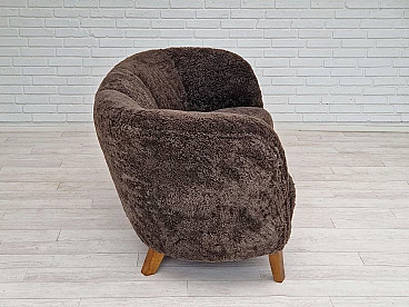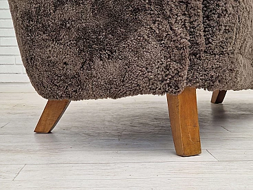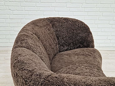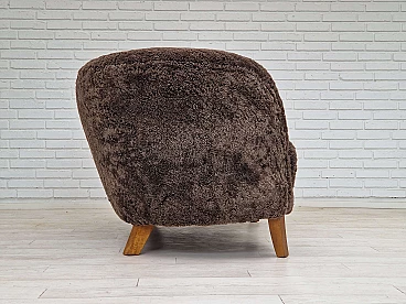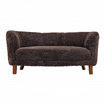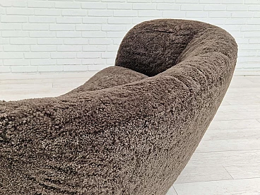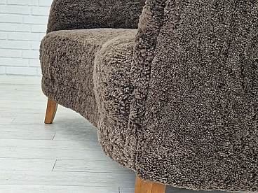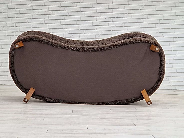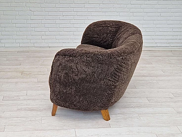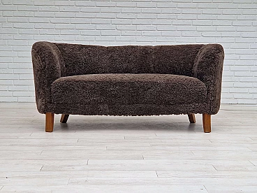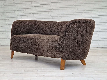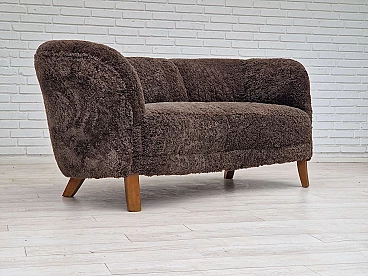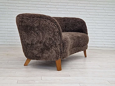 Divano danese a due posti in faggio tinto e pelle di pecora, anni '60