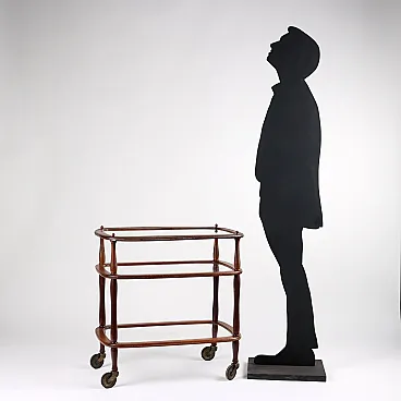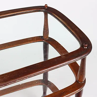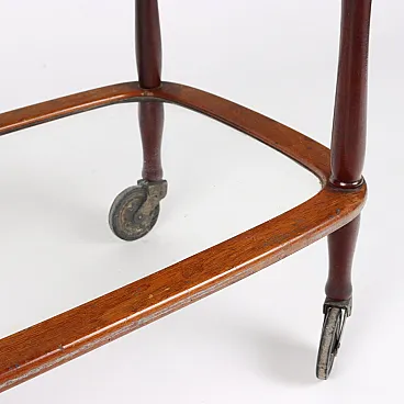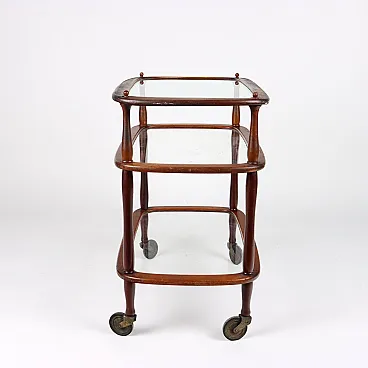 Carrello bar a tre ripiani in faggio tinto e vetro, anni '50