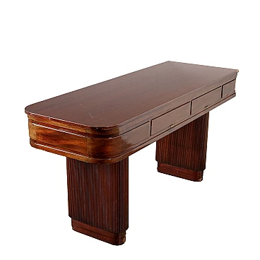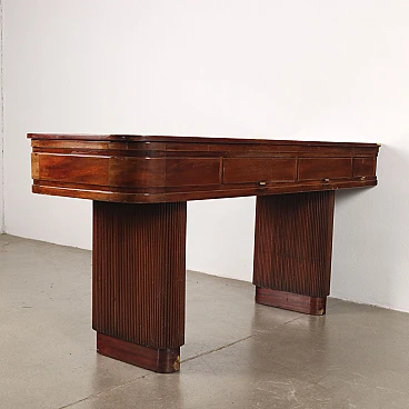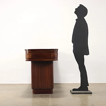 Banco da negozio in legno impiallacciato mogano con gambe grissinate, anni '60