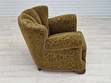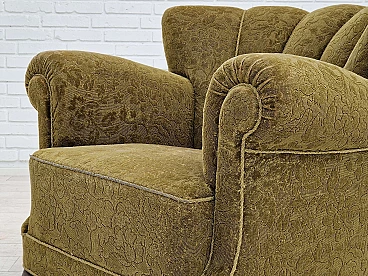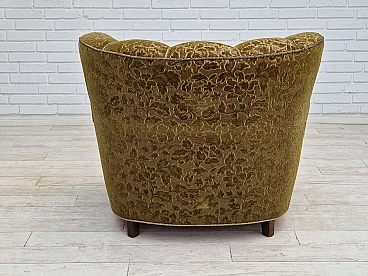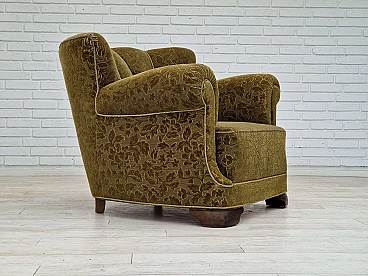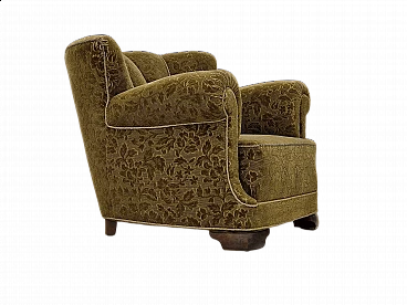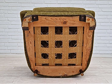 Poltrona danese in tessuto verde con molle in ottone, anni '50