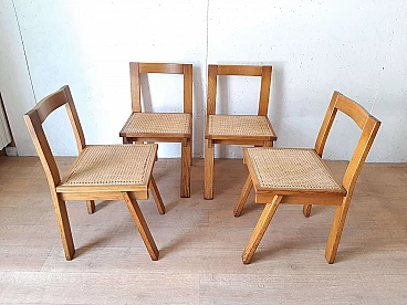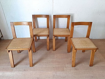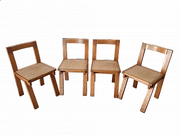 4 Sedie in rovere con sedute in paglia di Vienna, anni '80